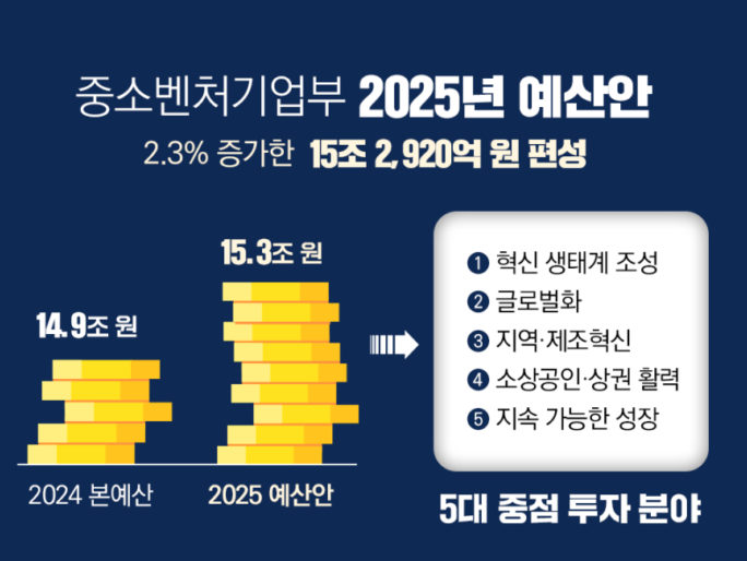 중소벤처기업부의 2025년 예산이 15.2조원으로 확정되었습니다.