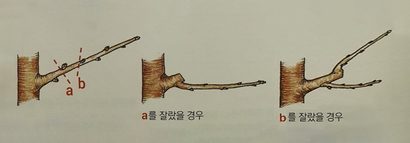 - 솎아내거나 축소하고 싶을 때 : 휴면기(늦가을 11월~늦겨울 2월)에 가지치기