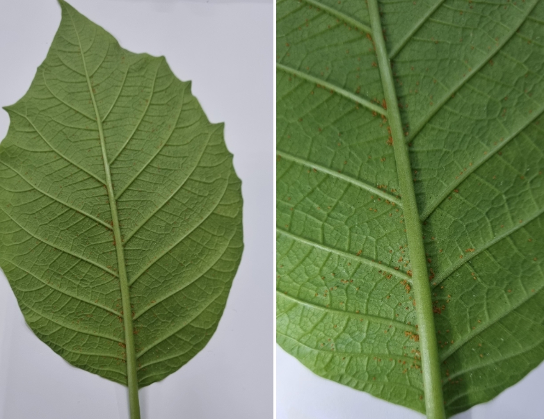 흰 천로 잎의 앞뒤를 닦을 때 응애나 알이 있을 경우 붉거나 갈색을 띤 점들이 보인다면 응애를 의심할 수 있습니다. 미세 분무기로 물을 분사했을 때 잎 뒷면으로 얇은 거미줄들이 보인다면 응애가 제대로 자리 잡고 번식하고 있는 상태입니다.